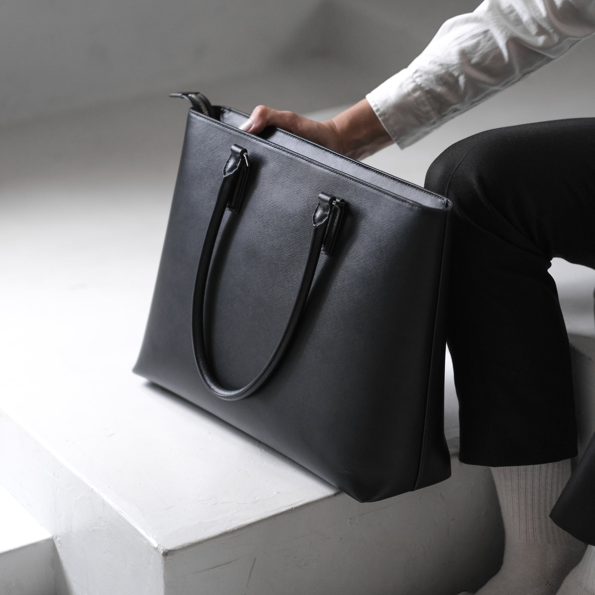 <アウトレット>Italian Saffiano Leather Tote (Black)